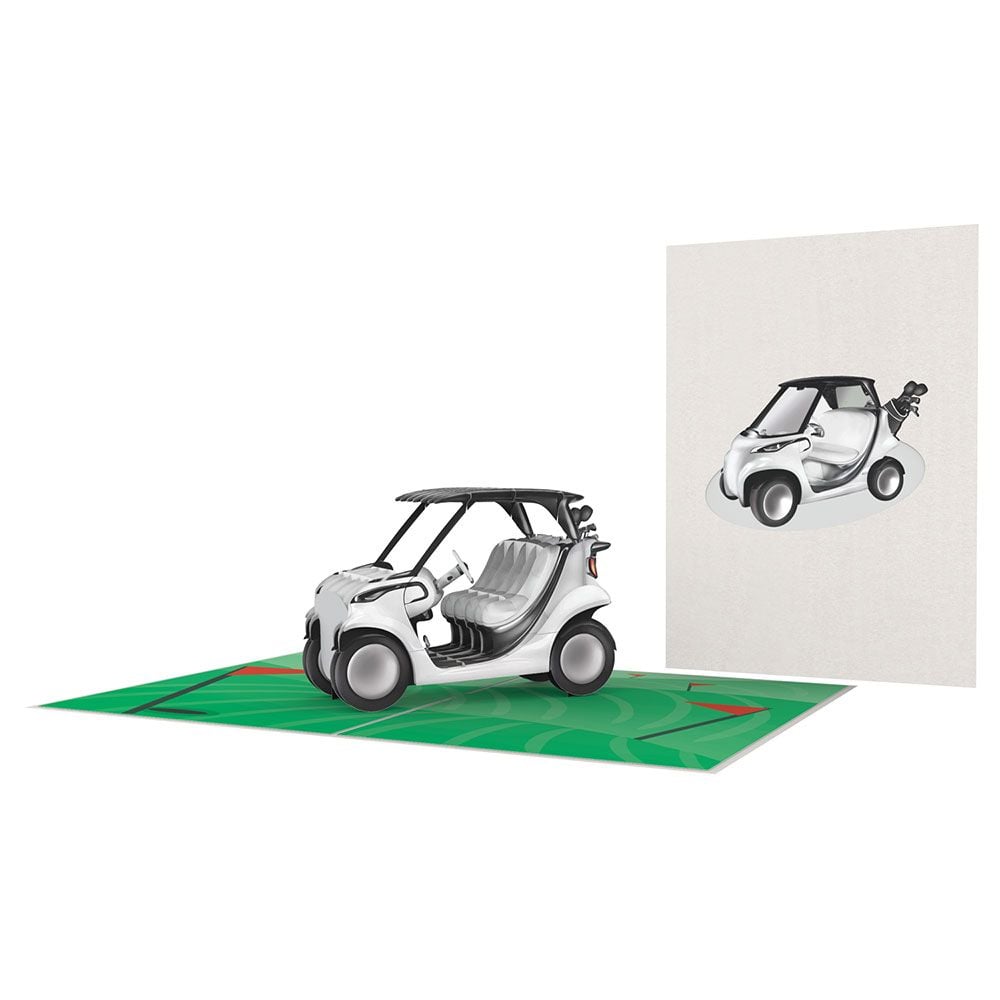 This 3D greeting card isn't just a card – it's a keepsake that captures the spirit of golf in the most delightful way. Watch your recipient light up with joy as a beautifully detailed golf cart pops up when the card is opened.